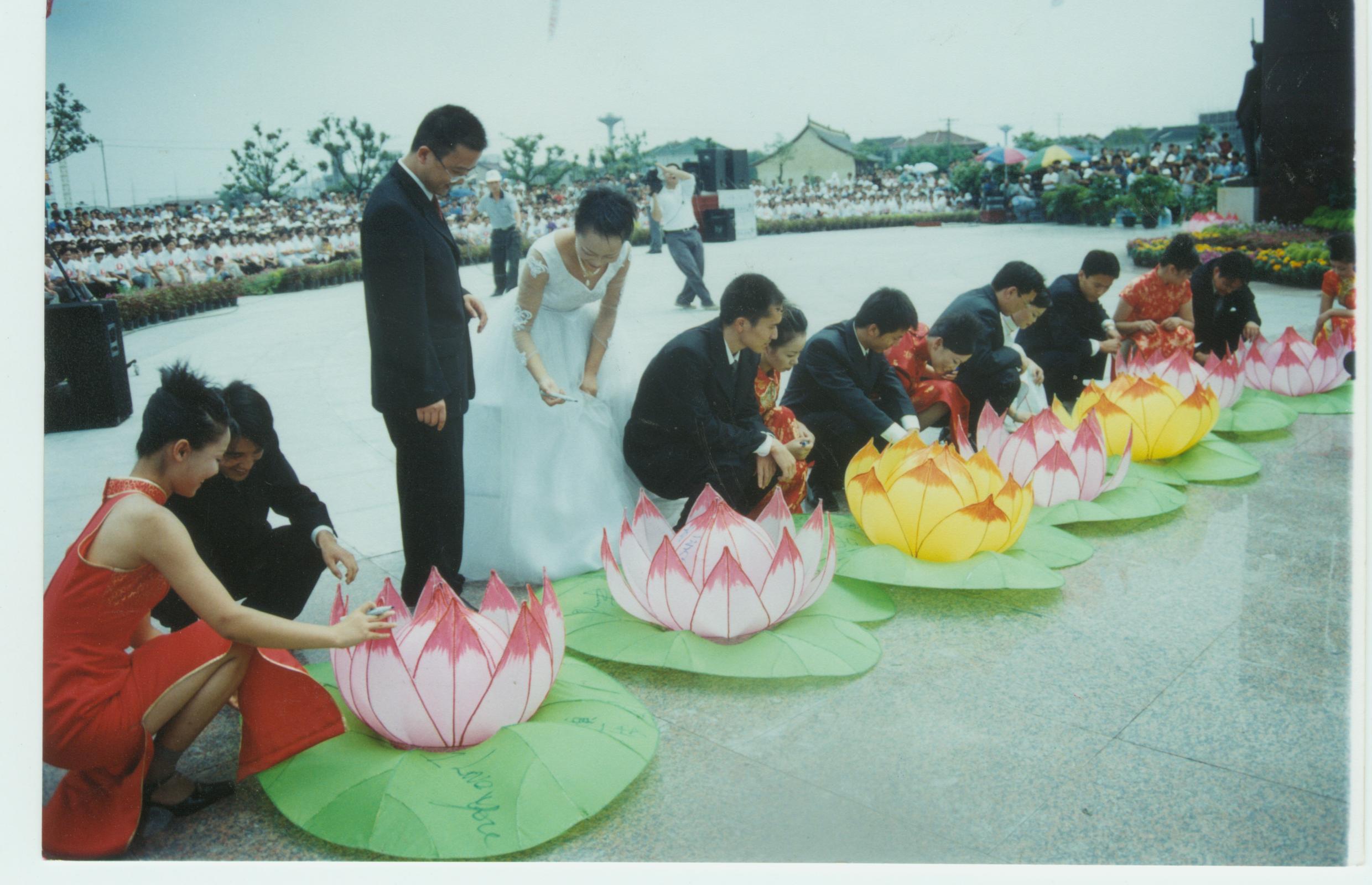8月15日上午(七夕當天),臺灣的七對情侶相會無錫,他們中年齡最大的夫婦,先生77歲,太太65歲。臺灣的情侶與無錫的情侶們一起學習制作河燈,并坐在“古運河”號游船上,一起邊放河燈,邊交談,共敘同宗同族的相思之情,紅豆集團董事局主席周耀庭向他們贈送了象征吉祥、美好、相思和愛的紅豆。在千年紅豆樹下,鳳凰衛(wèi)視的著名主持人吳小莉闡述了她對親情、友情、愛情、同胞之情的獨到見解。臺灣詩人余光中則在當天下午,來到無錫“天下第二泉”,暢談中華民族的傳統(tǒng)文化,并參觀了紅豆集團,為七夕紅豆·相思節(jié)題詞:一粒紅豆,千年因緣。